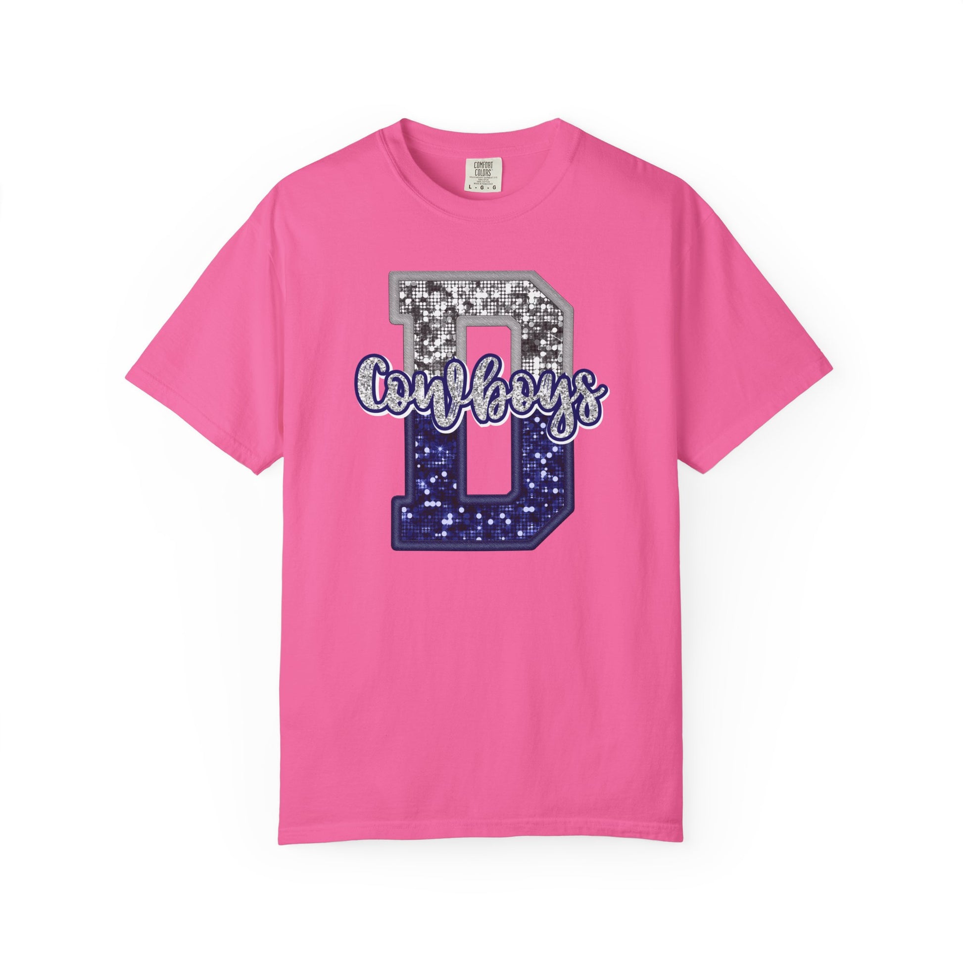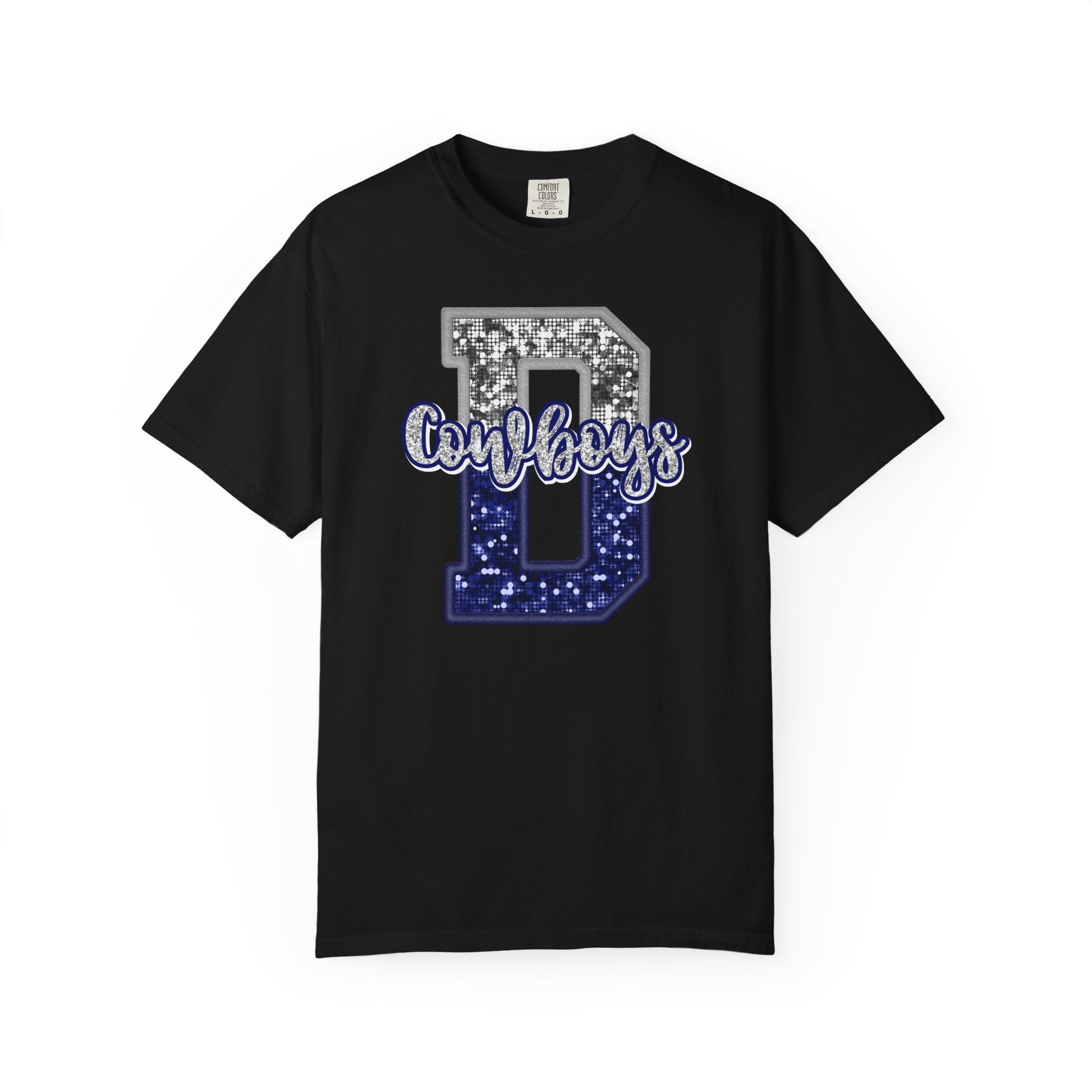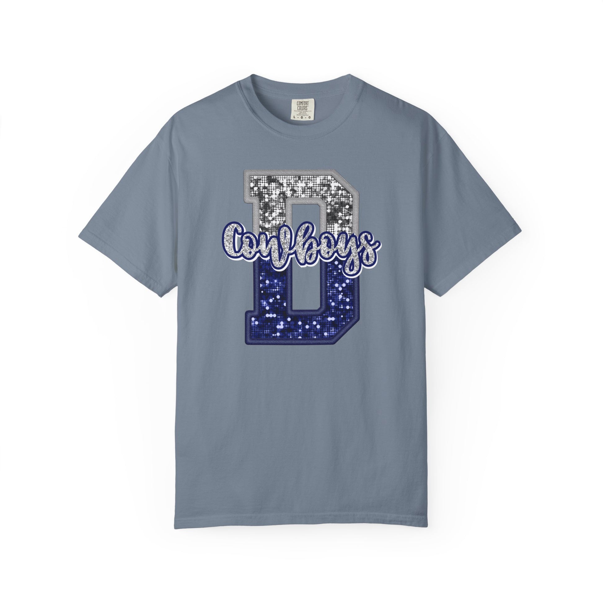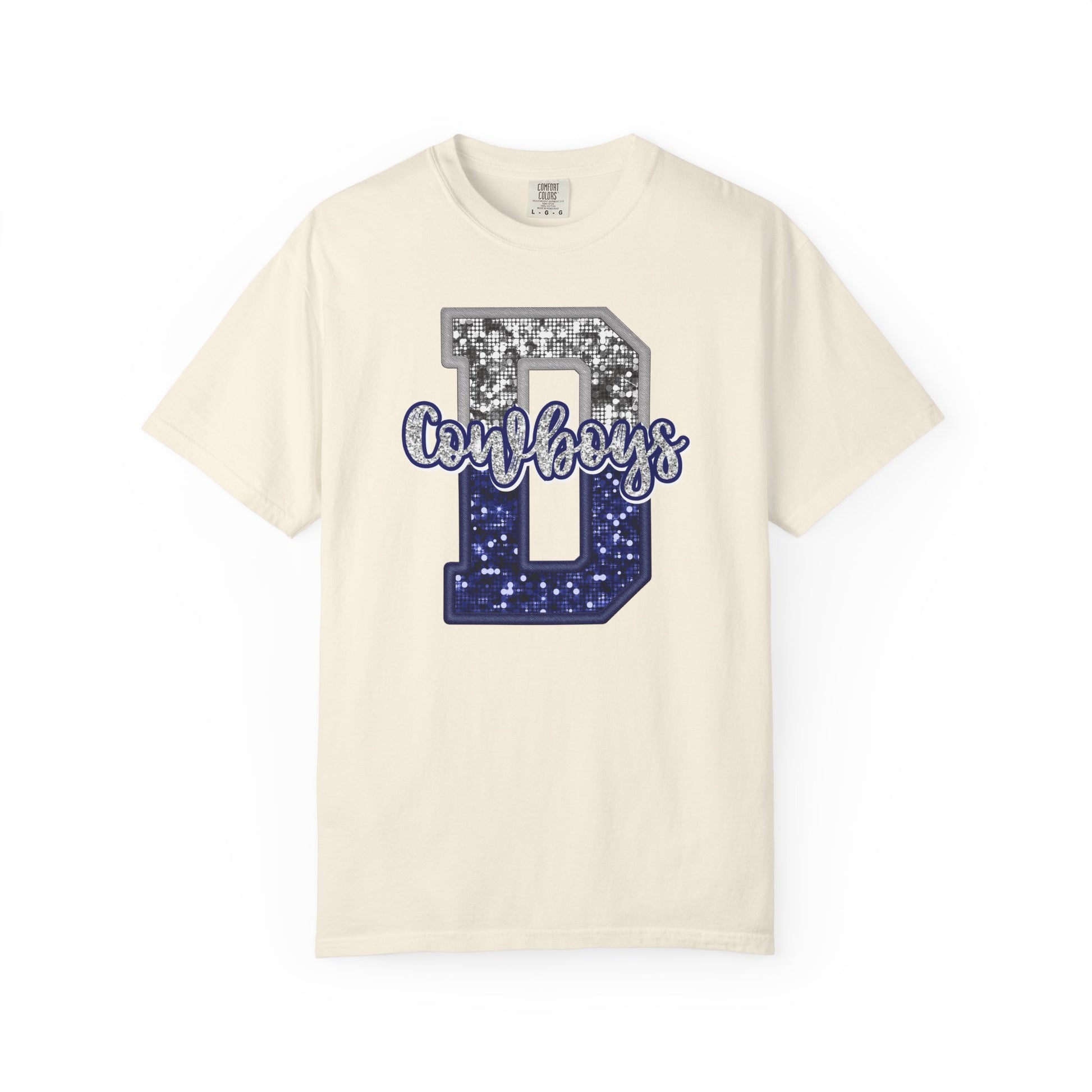 Dallas Blue & Silver Cowboys Inspired Tee • Comfort Colors® 1717 • Game Day Football Shirt • Sequin Style Letter D Fan Top